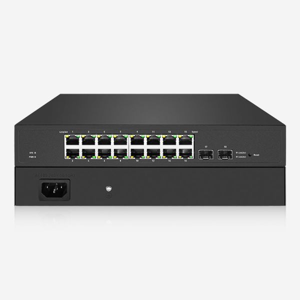| Ports | 16 10,100,1000Mbps RJ45 ports, 2 Gigabit sfp fiber ports |